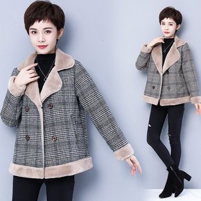 羊羔毛呢外套女士短韩版宽松妈妈新款秋冬潮百搭格子呢...