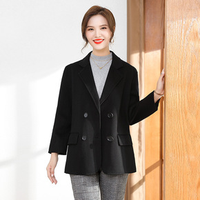2021秋冬新款女风衣毛呢大衣绵羊毛双面呢驼色呢子...