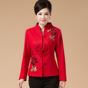 中老年人冬装女装妈妈毛呢外套短款奶奶装加厚唐装上衣...