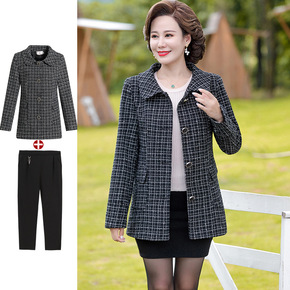 2019新款中年妈妈装秋冬毛呢外套40岁50洋气中...