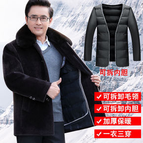 冬季男中长款毛呢大衣中老年加绒加厚男士外套爸爸装呢...