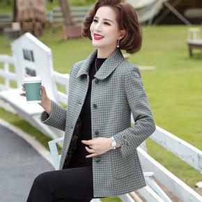 格子外套女新款秋冬毛呢上衣妈妈装宽松显瘦小个子中老...