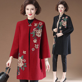 中老年女装中长款新款2020妈妈装春秋毛呢外套中年...