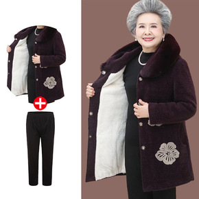 妈妈冬装水貂绒外套中长款2021新款中老年女装加厚...