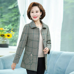 中老年女装秋装毛呢外套洋气格子衣服中年50岁妈妈春...