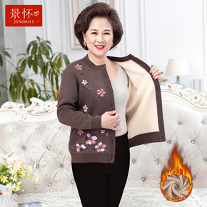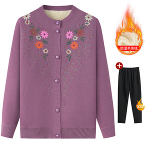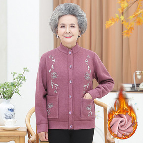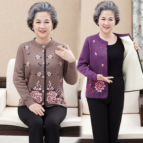 中老年女装加厚加绒保暖内衣老人衣服印花针织开衫奶奶...