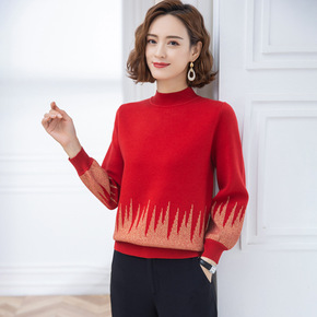 半高领毛衣女宽松慵懒风秋冬新款中年妇女针织上衣百搭...
