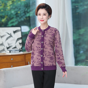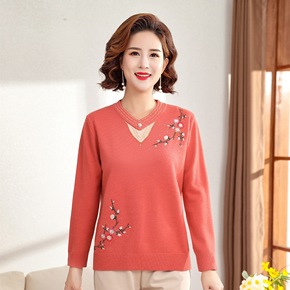 直播2021新款中老年女装秋冬长袖针织衫中年妈妈休...