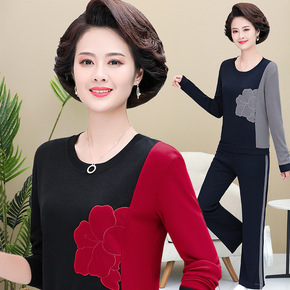 2021中老年妈妈装秋季新款长袖时尚休闲上衣高端气...