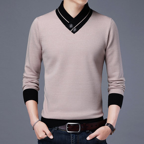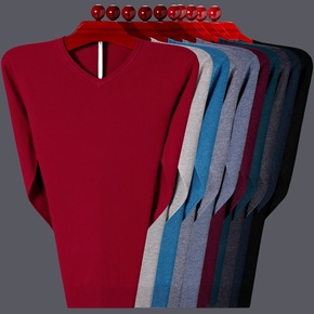 2021秋季软糯毛衣男V领薄款韩版修身潮流打底上衣...