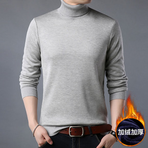 令浩春秋冬季男士厚款毛线衣半高领套头保暖打底针织衫...