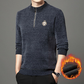 新款雪尼尔毛衣男冬季加绒加厚圆领保暖拉链领男士冬款...