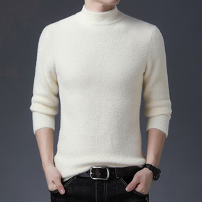 2021秋冬加厚款男士仿水貂毛毛衣纯色半高领打底衫...