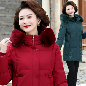 中老年女绣花棉衣2021冬装新款棉袄妈妈羽绒棉服老...