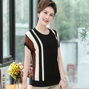 妈妈夏装短袖t恤洋气2021新款50岁针织小衫时尚...