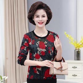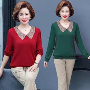 时尚中年妈妈装长袖T恤2021秋季新款中老年女装洋...