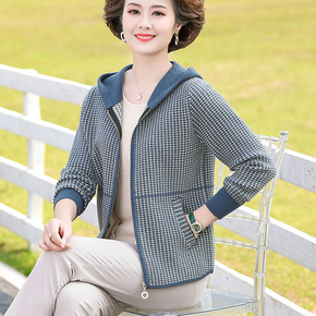 妈妈装针织衫女短款2021春秋装新款棒球服中老年夹...