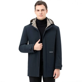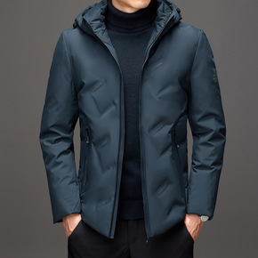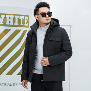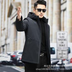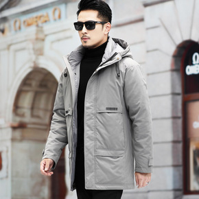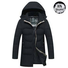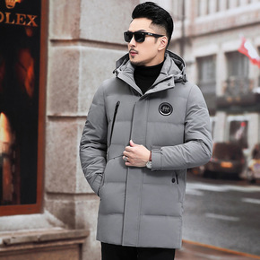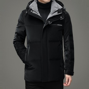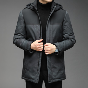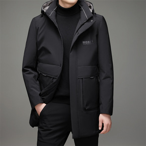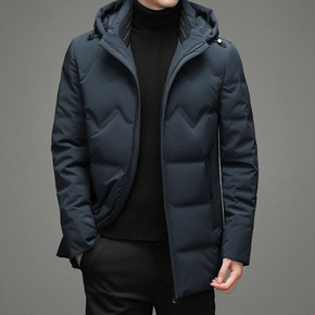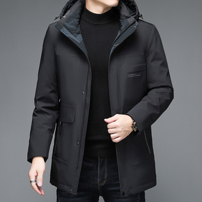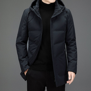 男士中长款羽绒服中青年连帽商务休闲工装白鸭绒外套爸...