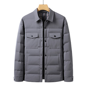 高品质90白鸭绒冬季男士外套轻薄羽绒服中青年翻领夹...