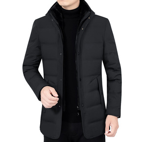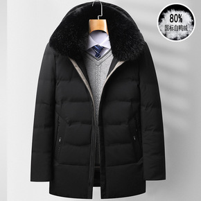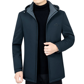 冬季新款中长款羽绒服男士中年可脱卸帽爸爸装保暖防寒...