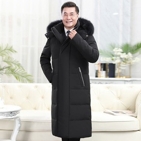 中年羽绒服男外套加厚中长款冬季新款男士连帽冬装商务...