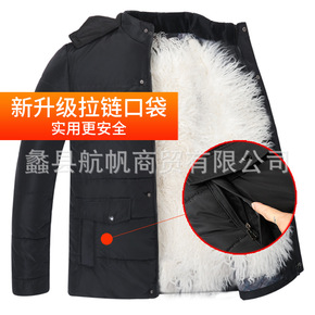 包邮棉衣男秋冬加绒加厚保暖外套青中年可脱帽棉袄男士...