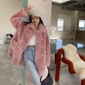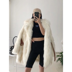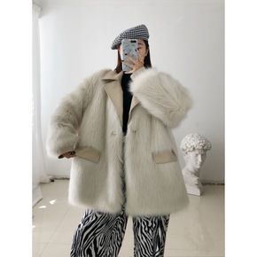 新款时尚狐狸毛皮外套女中长款海宁仿皮毛一体大衣年轻...