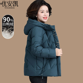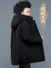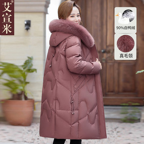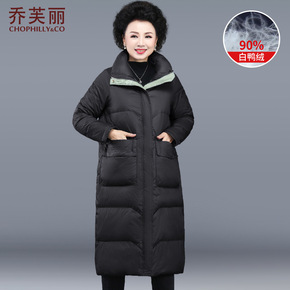 妈妈冬装羽绒服黑色中长款2021新款大码宽松中老年...