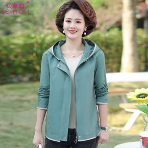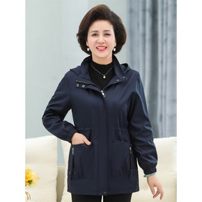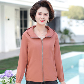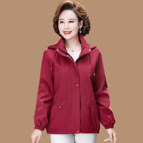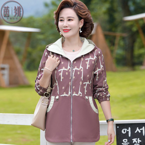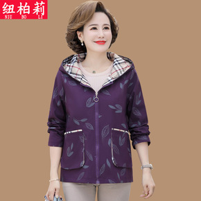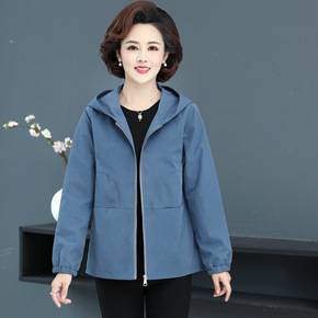 妈妈春秋新款连帽夹克衫短款薄外套大码中老年妇女装上...