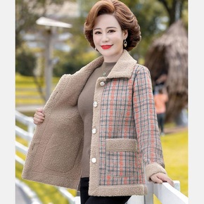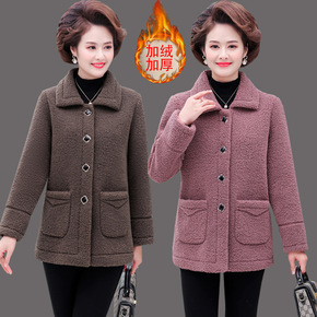 妈妈装冬装羊羔毛绒外套女加绒加厚宽松大码中老年颗粒...
