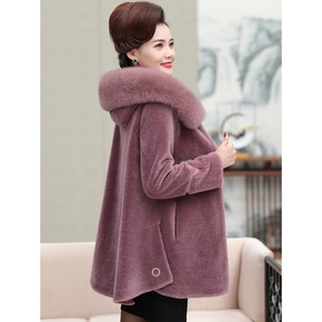 羊剪绒大衣中长款狐狸毛连帽皮毛一体羊毛妈妈装中老年...