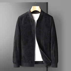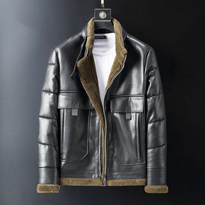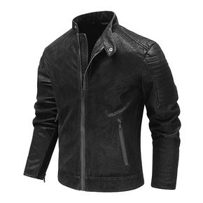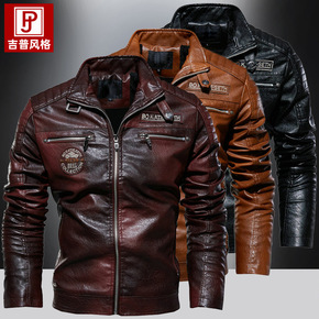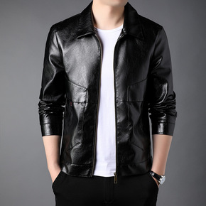 2021年新款男式皮衣植绒皮花纹水洗欧码跨境大码简...