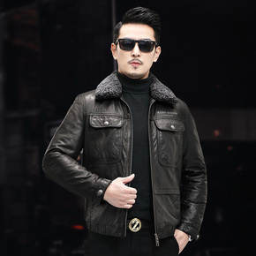 2022新款秋冬男装麂皮绒生态皮毛一体潮流飞行服机...