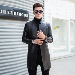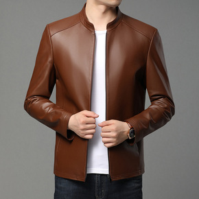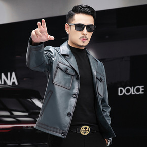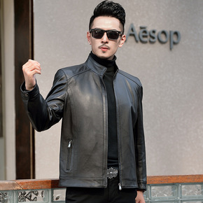 海宁真皮皮衣男薄款大码立领修身韩版帅气海宁皮夹克2...