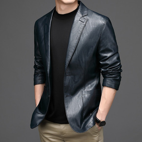 全网新品 皮衣外套男士修身2021年春秋季男装帅...