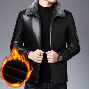 2021新款加厚海宁皮外套爸爸秋冬装加绒狐狸毛领男...