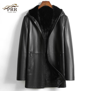 鹿皮真皮皮衣男水貂内胆整貂皮草外套中长款连帽貂皮大...