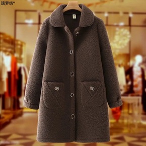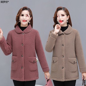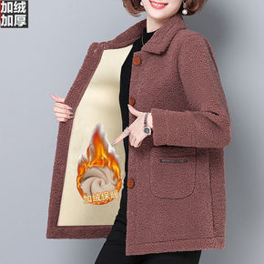 中年妈妈外套秋冬季新款加肥加大码女装皮毛一体羊羔绒...