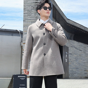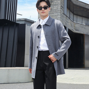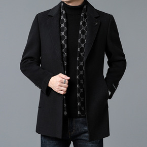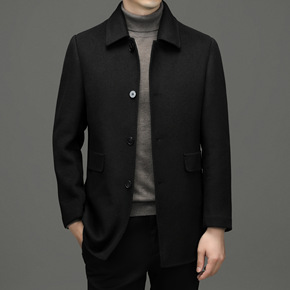 22冬季双面羊毛呢子大衣男中长款翻领单排扣纯色中年...