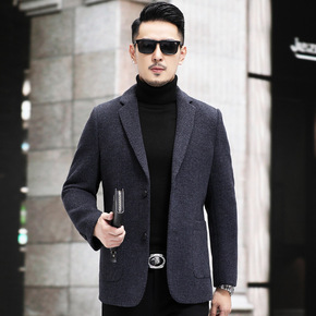 冬装新款男士纯羊绒大衣商务休闲青中年保暖时尚西服领...