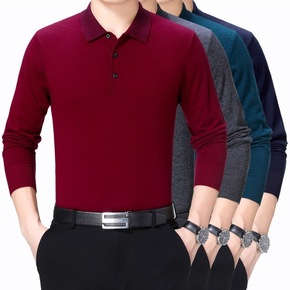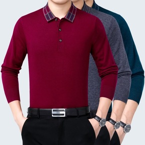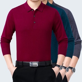 2020春秋新款大码T恤衫男装 长袖打底翻领薄款针...