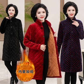 妈妈冬装外套中老年棉衣女中长款棉服大码奶奶装加绒加...