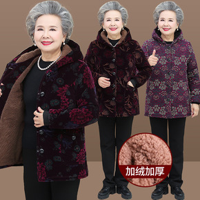 中老年人女装奶奶冬装棉衣外套连帽妈妈棉服老太太加绒...