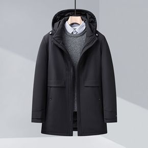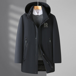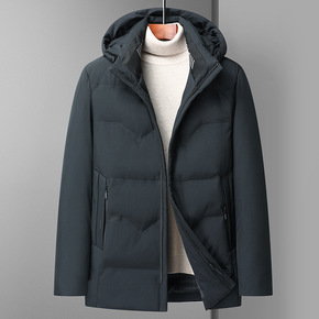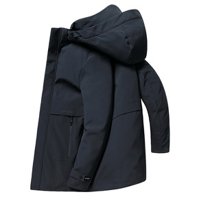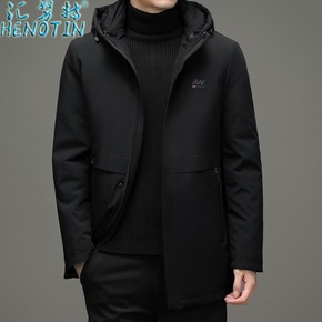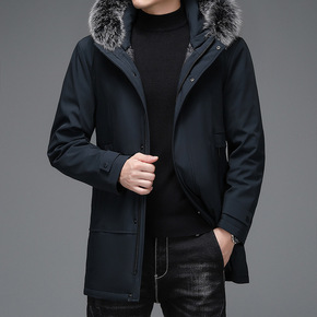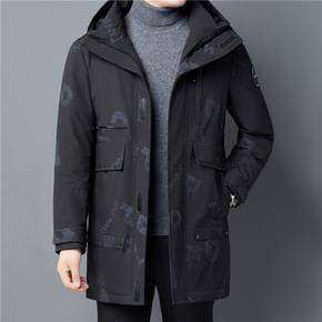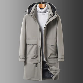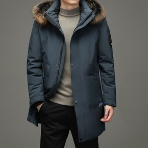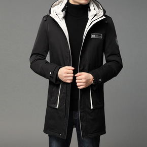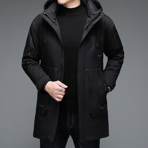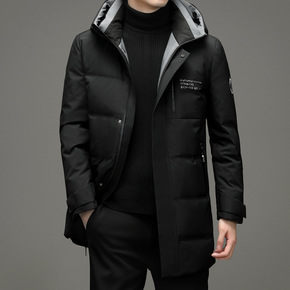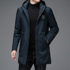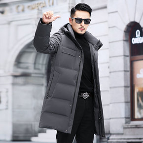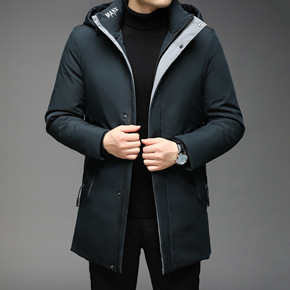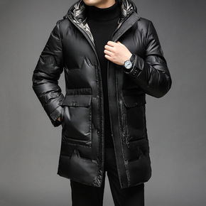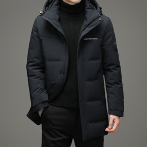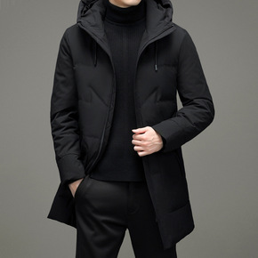 2021年冬季新款男士羽绒服中长款连帽加厚商务男装...
