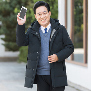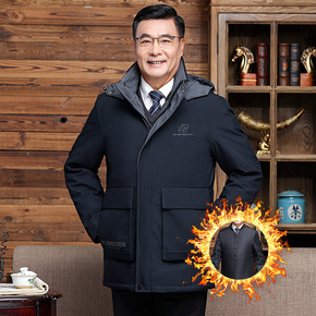 恒源祥男士羽绒服中老年保暖连帽夹克冬季爸爸装可拆卸...