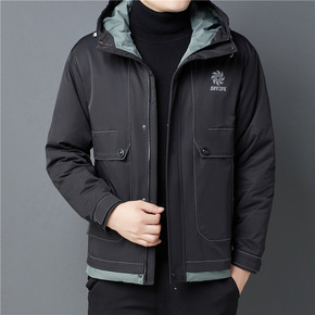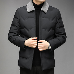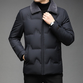 冬季新款时尚羽绒服男短款翻领时尚外套中青年爸爸装外...