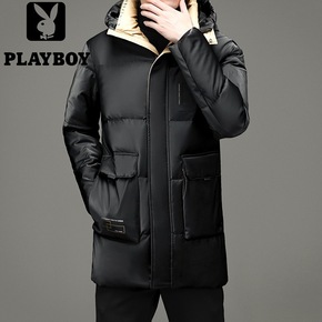 花公子羽绒服中长款加厚保暖连帽外套冬季休闲白鸭绒男...