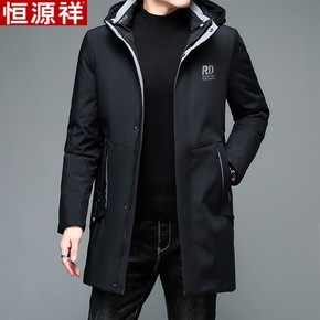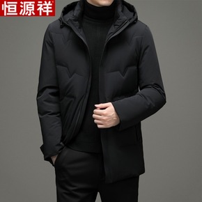 恒源祥冬季新款男士白鸭绒羽绒服中长款连帽可拆卸外套...