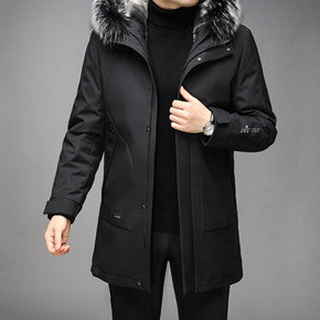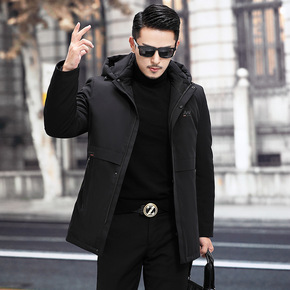 中长款羽绒服立领男士商务90白鸭绒冬季可拆卸内胆保...