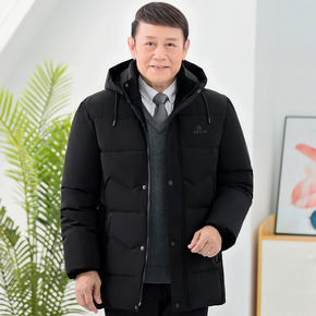 爸爸冬装羽绒服男士中长款加大码冬季中老年人男士保暖...